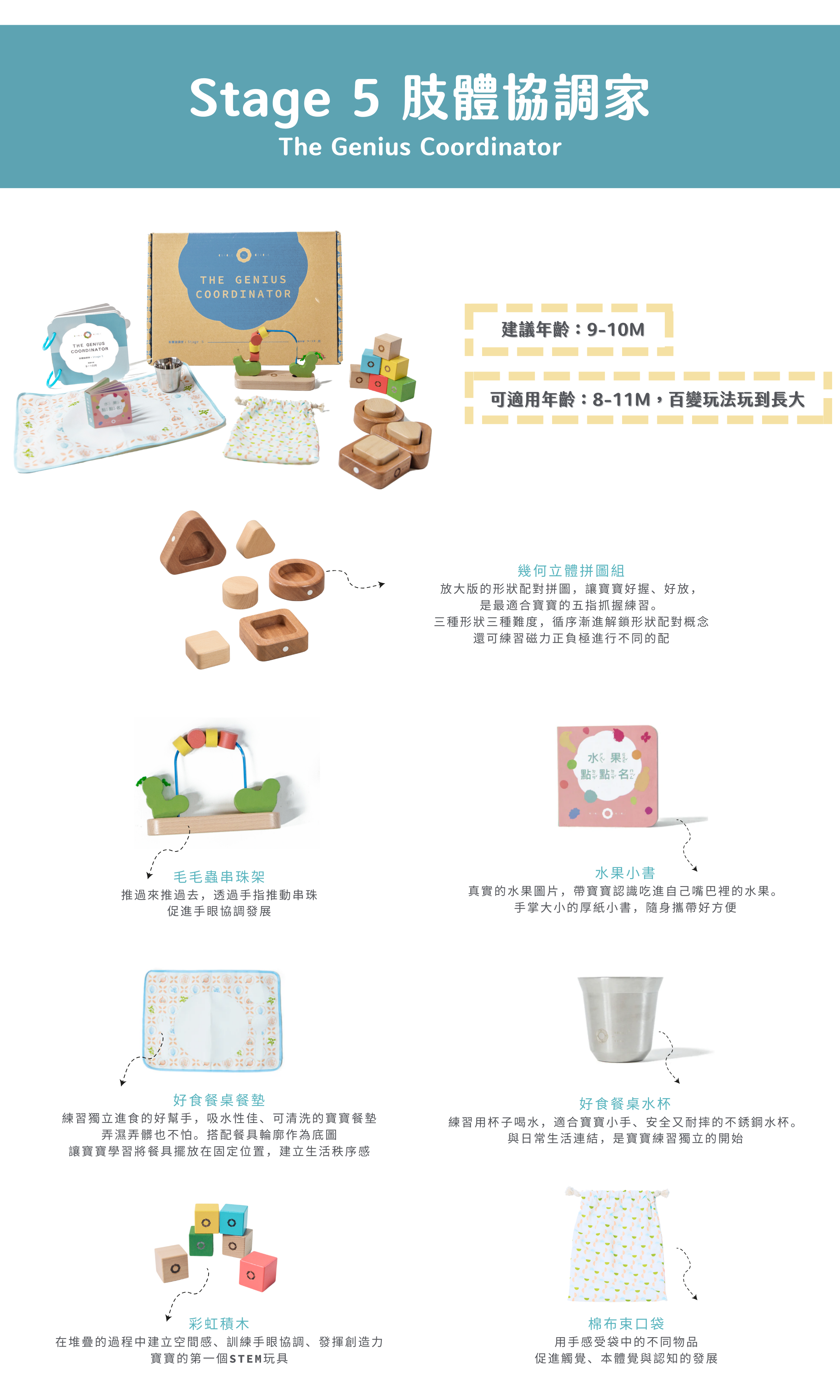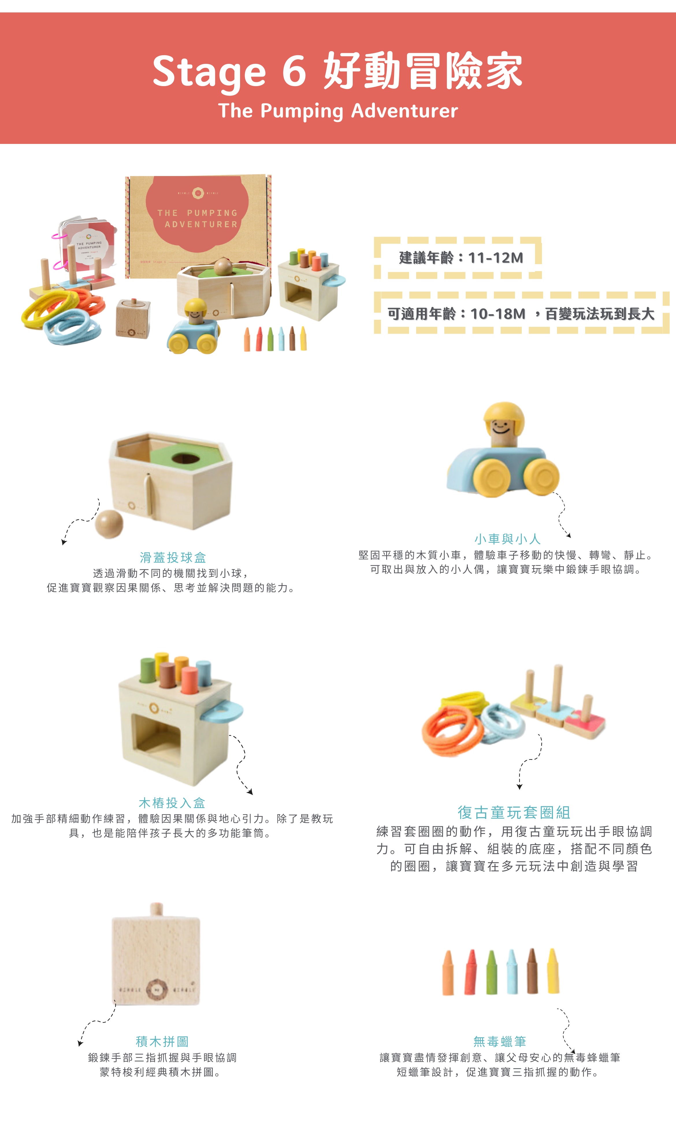 每組教具均可隨著孩子的成長進階玩法,滿足不同階段的學習需求,從現在玩到長大。